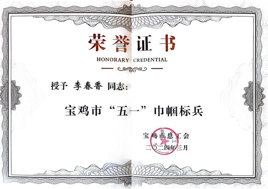 扎根一線 風(fēng)華無(wú)限||寶光股份李春香喜獲寶雞市“五一巾幗標(biāo)兵”榮譽(yù)稱號(hào)