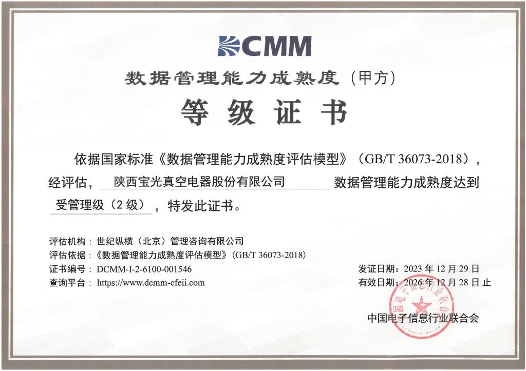 - 2023年12月通過DCMM等級認證