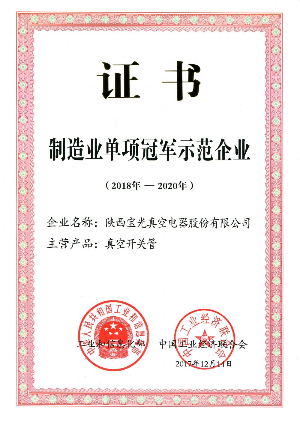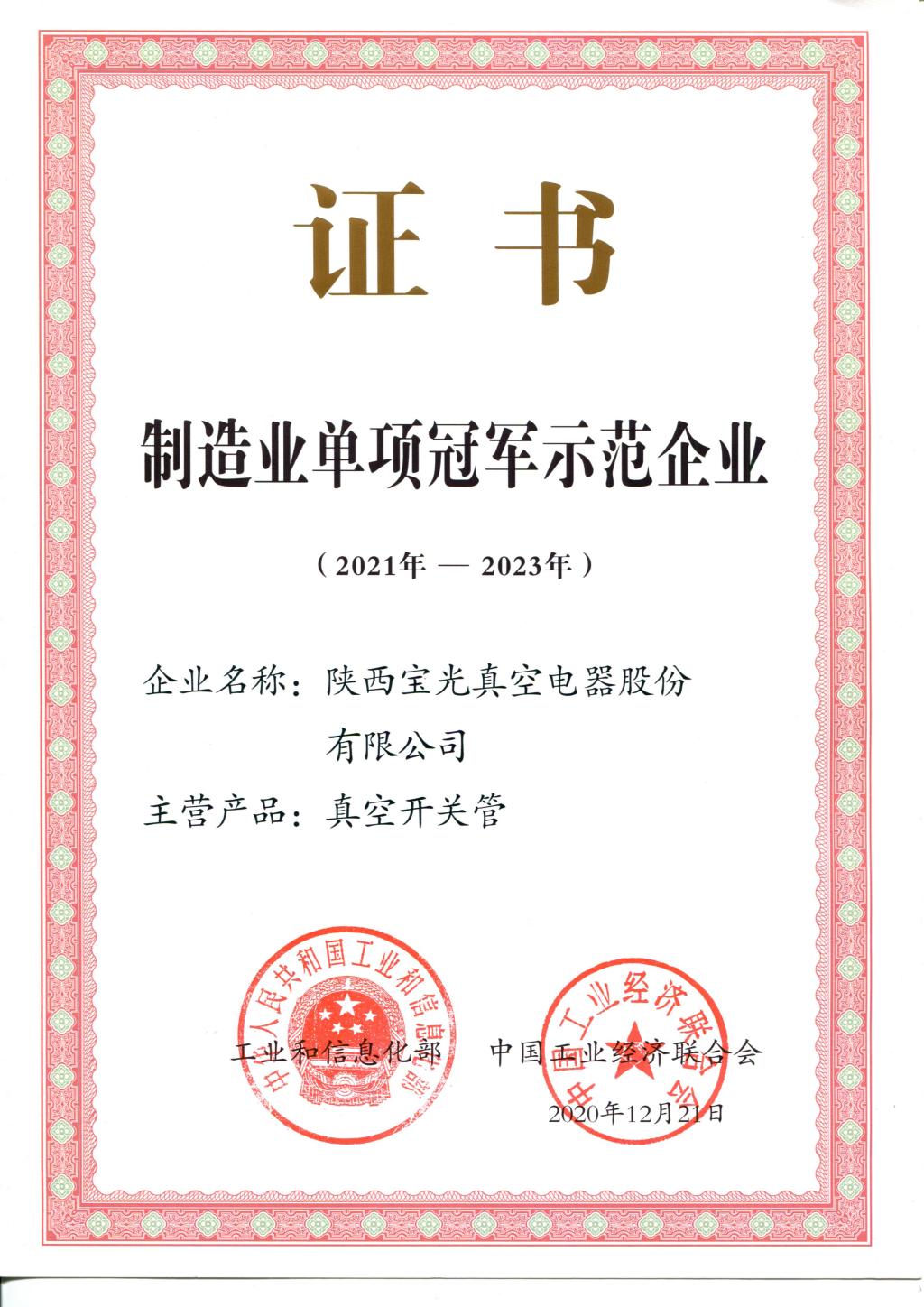 - 制造業(yè)單項冠軍示范企業(yè)