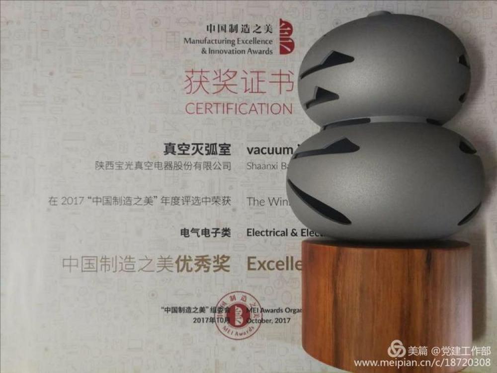 - 真空滅弧室榮獲中國制造之美優(yōu)秀獎