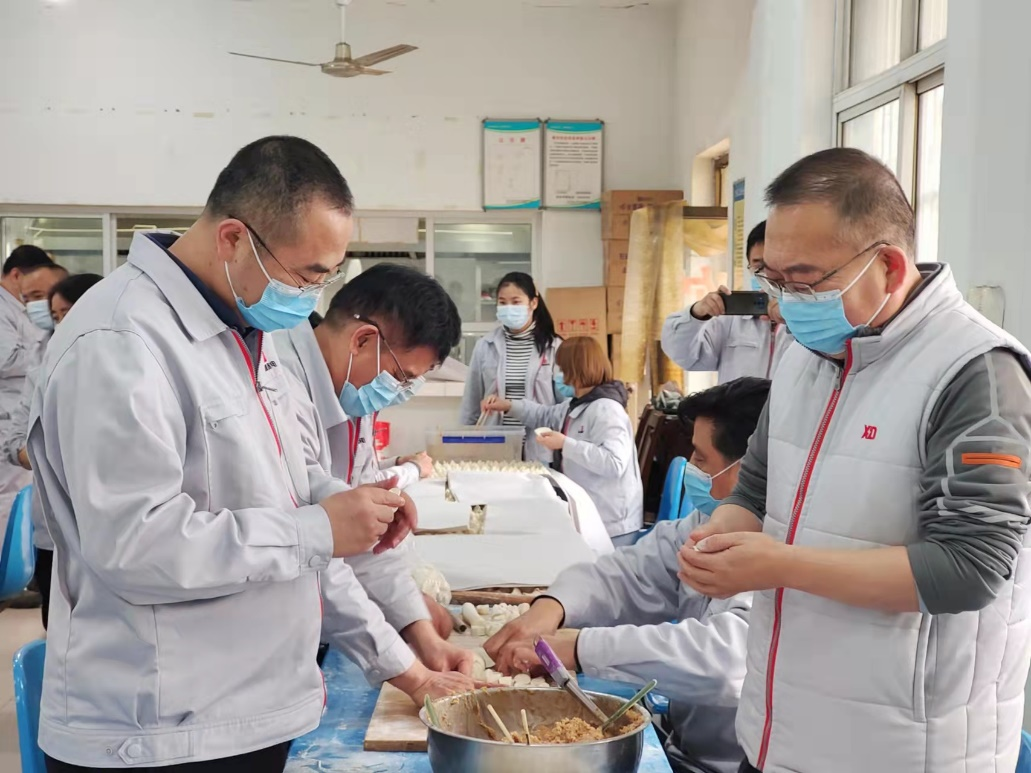 公司駐廠領(lǐng)導(dǎo)、一些干部職工緊張忙碌起來,有的搟有的包,場面溫馨感人,元寶形、月牙形,不同形狀的餃子整齊地排列在一起足有一萬多只,不僅分擔(dān)了后勤保障人員的工作壓力,還用實際行動彰顯著嚴肅活潑的工作作風(fēng)和凝聚奮進的精神品質(zhì)。好吃不過餃子,溫暖不過集體。在這個特殊時期能吃到手工水餃令人難忘,雖然暫時不能和家人、親友團聚,但大家相互關(guān)心、相互鼓勵讓每位員工感受到了大家庭的溫暖,心底涌起一股股暖流。