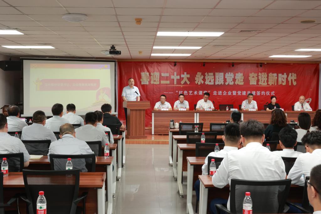 謝洪濤對各位領(lǐng)導(dǎo)、嘉賓的到來表示誠摯歡迎,他指出,學(xué)校在人才培養(yǎng)、經(jīng)營管理、技術(shù)研究等方面給公司提供了無私支持,此次“紅色藝術(shù)課堂”進企業(yè)進一步激發(fā)了干部職工崇高的愛黨愛國情懷,雙方凝聚共識、結(jié)對共建、簽約揭牌,將開啟校企黨建聯(lián)建共建新紀元,掀開校企黨建結(jié)對共建、資源共享、優(yōu)勢互補、共同提高的新篇章。為此,他提出三點希望:一是要充分認識結(jié)對共建的重要意義,提高站位,增強責(zé)任感、緊迫感和使命感,圍繞校企高質(zhì)量發(fā)展,強強聯(lián)合,共同提高,努力建設(shè)校企黨建聯(lián)建共建的窗口和示范基地;二是要充分發(fā)揮結(jié)對共建的資源優(yōu)勢,通過多種方式借鑒好方法好經(jīng)驗,實現(xiàn)黨建與生產(chǎn)經(jīng)營、黨建與學(xué)校發(fā)展工作良性融合發(fā)展,實現(xiàn)雙方共贏;三是要充分彰顯結(jié)對共建的時代價值,持之以恒推進落實黨建共建基地工作規(guī)劃,營造濃厚的共建工作氛圍,按工作計劃扎實有效開展各項聯(lián)建共建活動。