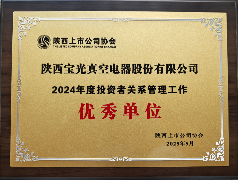 寶光股份作為國內(nèi)真空滅弧室領(lǐng)域的龍頭企業(yè),始終將公司治理作為高質(zhì)量發(fā)展的重要基石。此次獲獎既是對公司過去工作的肯定,更是對未來進一步優(yōu)化投資者關(guān)系管理工作的激勵。榮譽鞭策前行,未來,公司將持續(xù)以高質(zhì)量信息披露傳遞發(fā)展信心,以更加積極的態(tài)度和更加務(wù)實的舉措,做好投資者關(guān)系管理工作,與投資者建立更加緊密、互信的關(guān)系,為公司的持續(xù)健康發(fā)展和資本市場的穩(wěn)定繁榮貢獻力量。