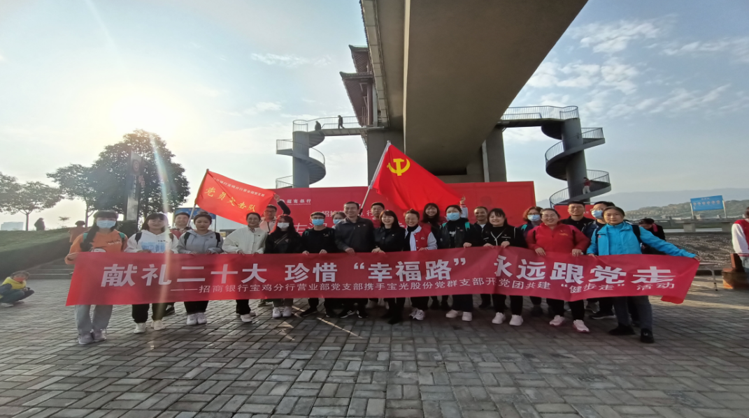 秋日暖陽,金風送爽,為慶祝黨的二十大勝利召開,豐富職工文化生活,10月22日上午,寶光股份黨群黨支部與招商銀行寶雞分行營業(yè)部黨支部攜手開展黨團共建“健步走”活動,黨群黨支部近20名黨員群眾參加了活動。