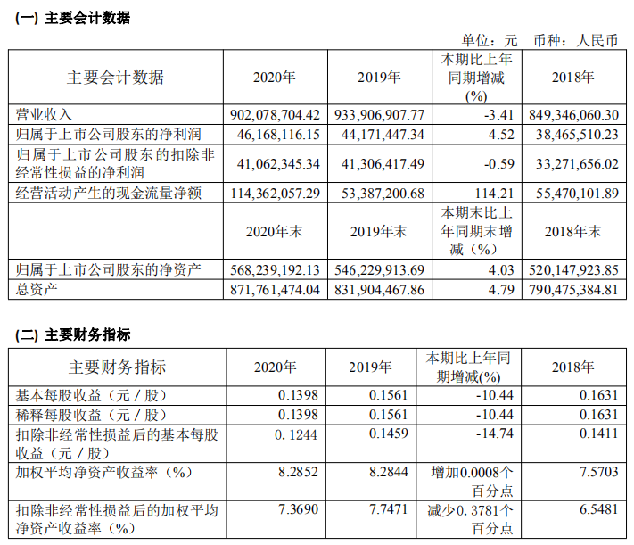 寶光股份2020年年度主要財務(wù)指標(biāo)